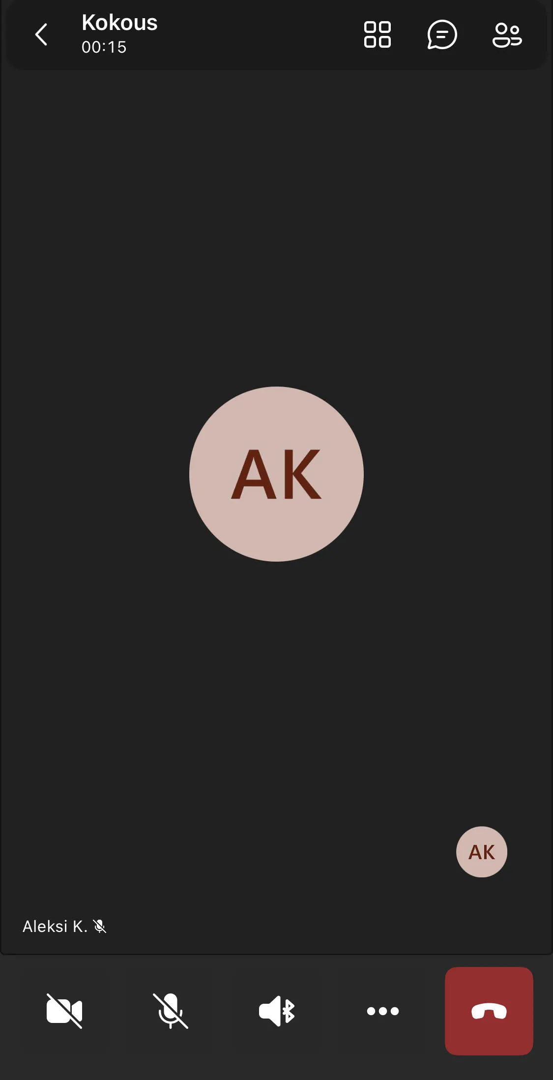 - Poistu: Poistu kokouksesta. Voit liittyä takaisin käyttämällä sähköpostiin saamaasi linkkiä.
